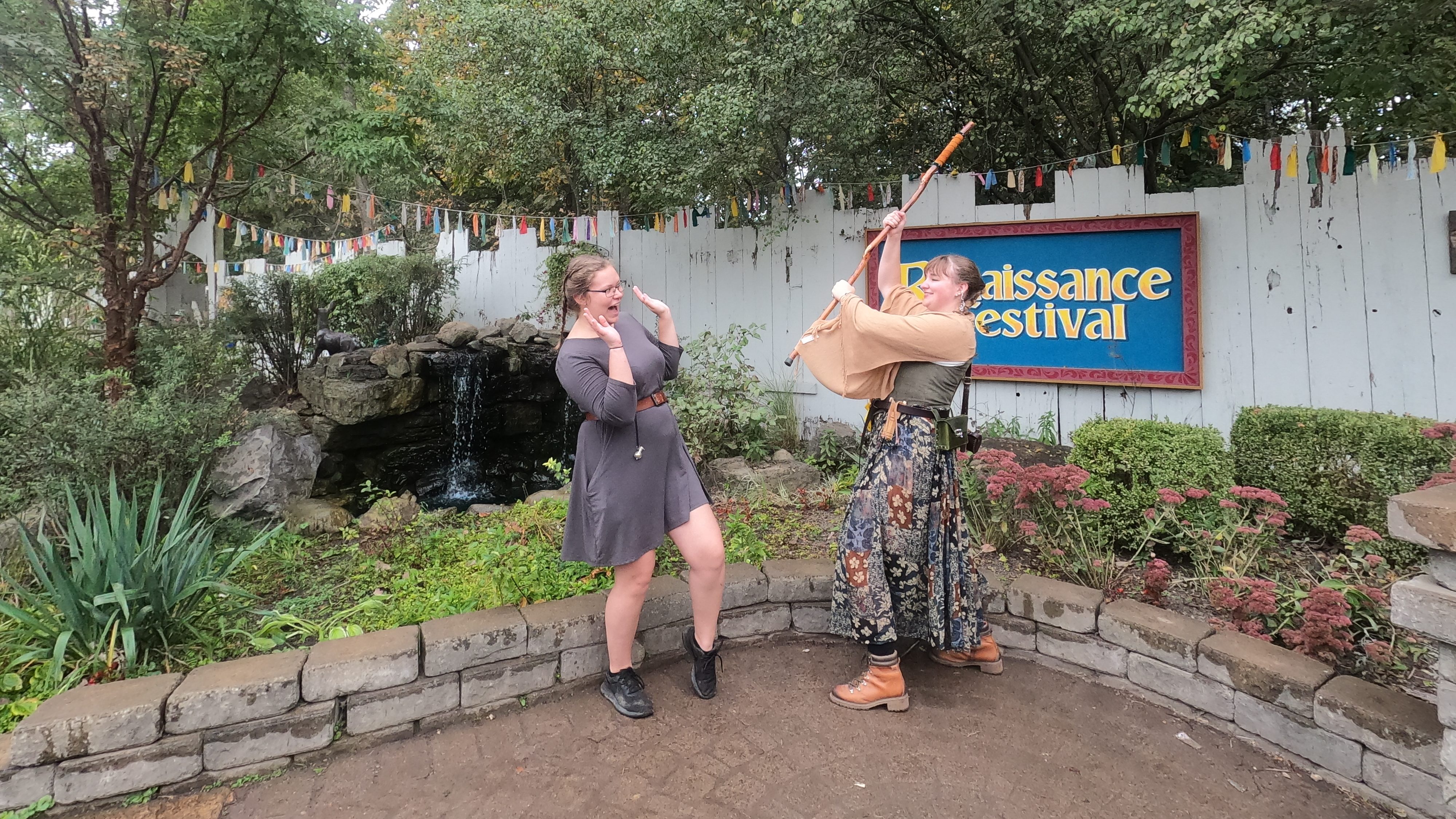 A final thing I think everyone should take the time to notice is the costumes of the people around you! As I mentioned earlier, people really do go all in for the renaissance festival. You can find excellent costumes and intricate cosplays anywhere you look, and more often than not those people are glad to stop and talk if you let them know how much you like their look. Sometimes you can even get a photo with them, like these nice Baldur’s Gate 3 characters I encountered.